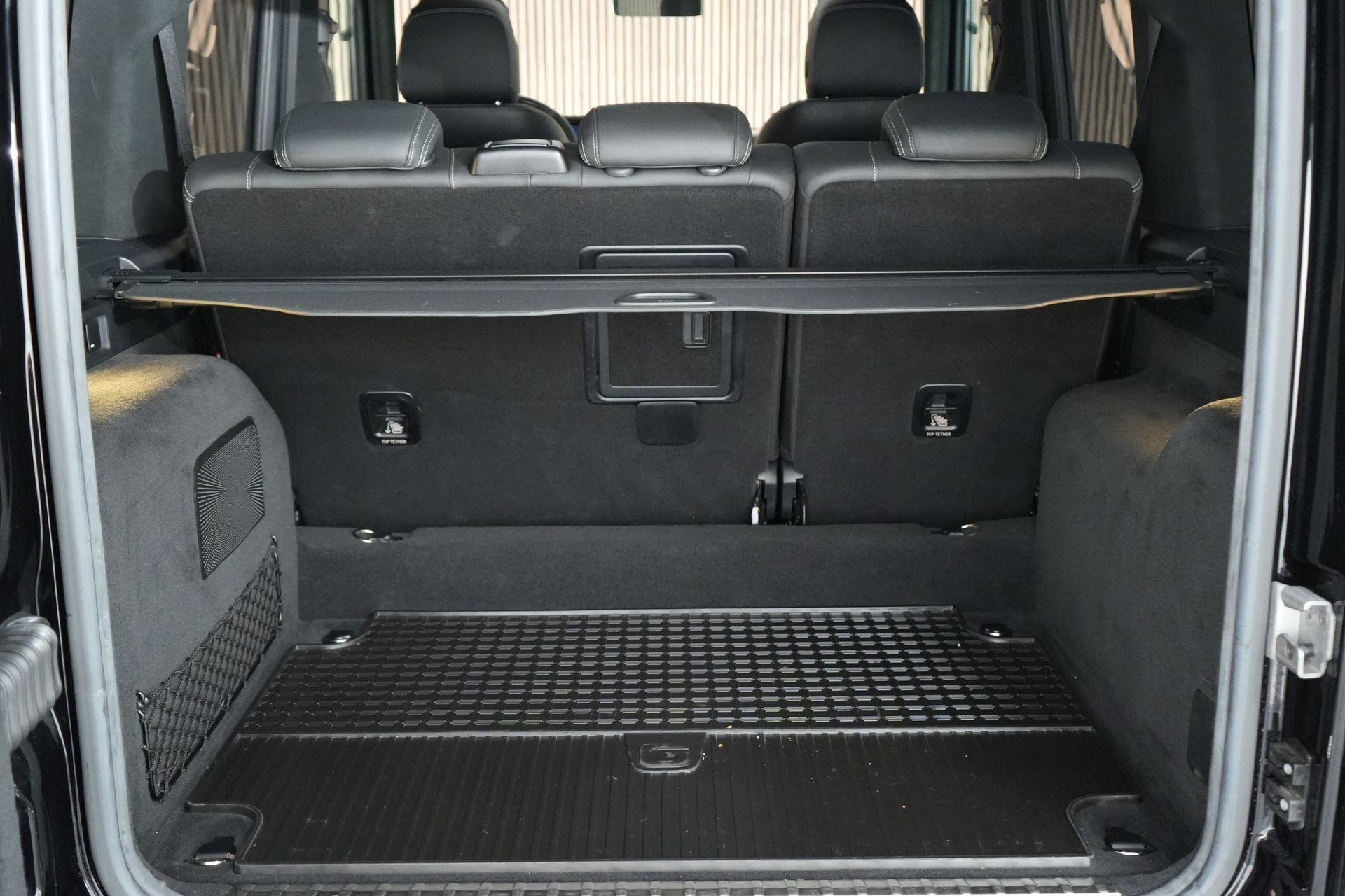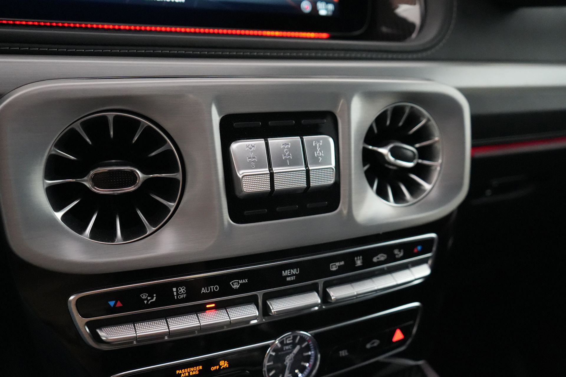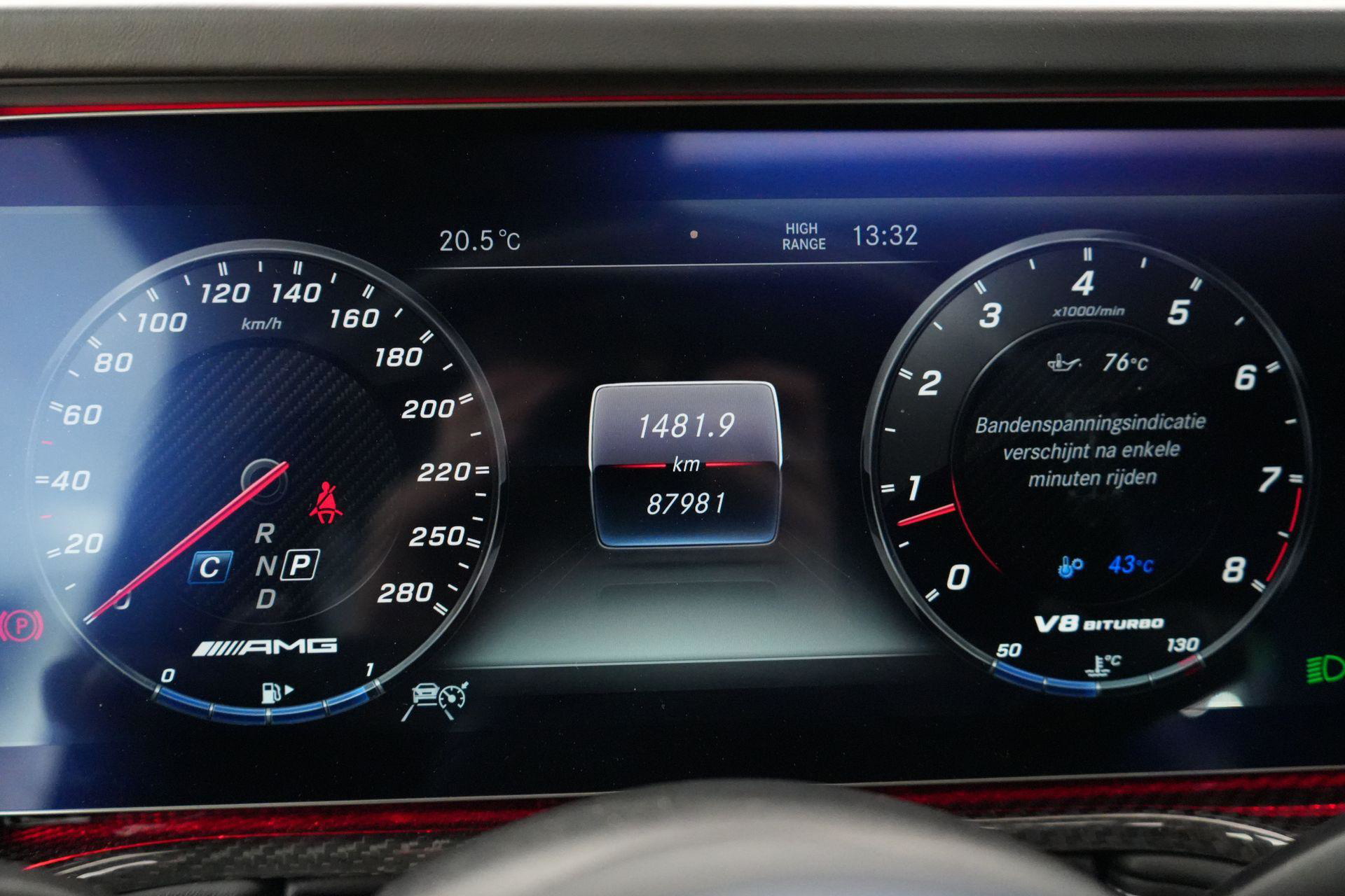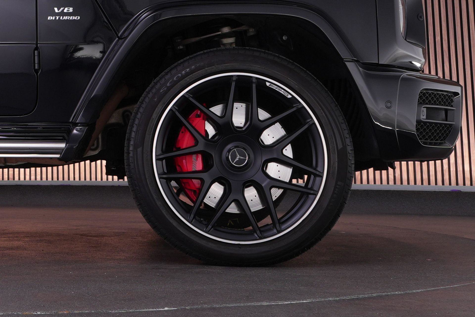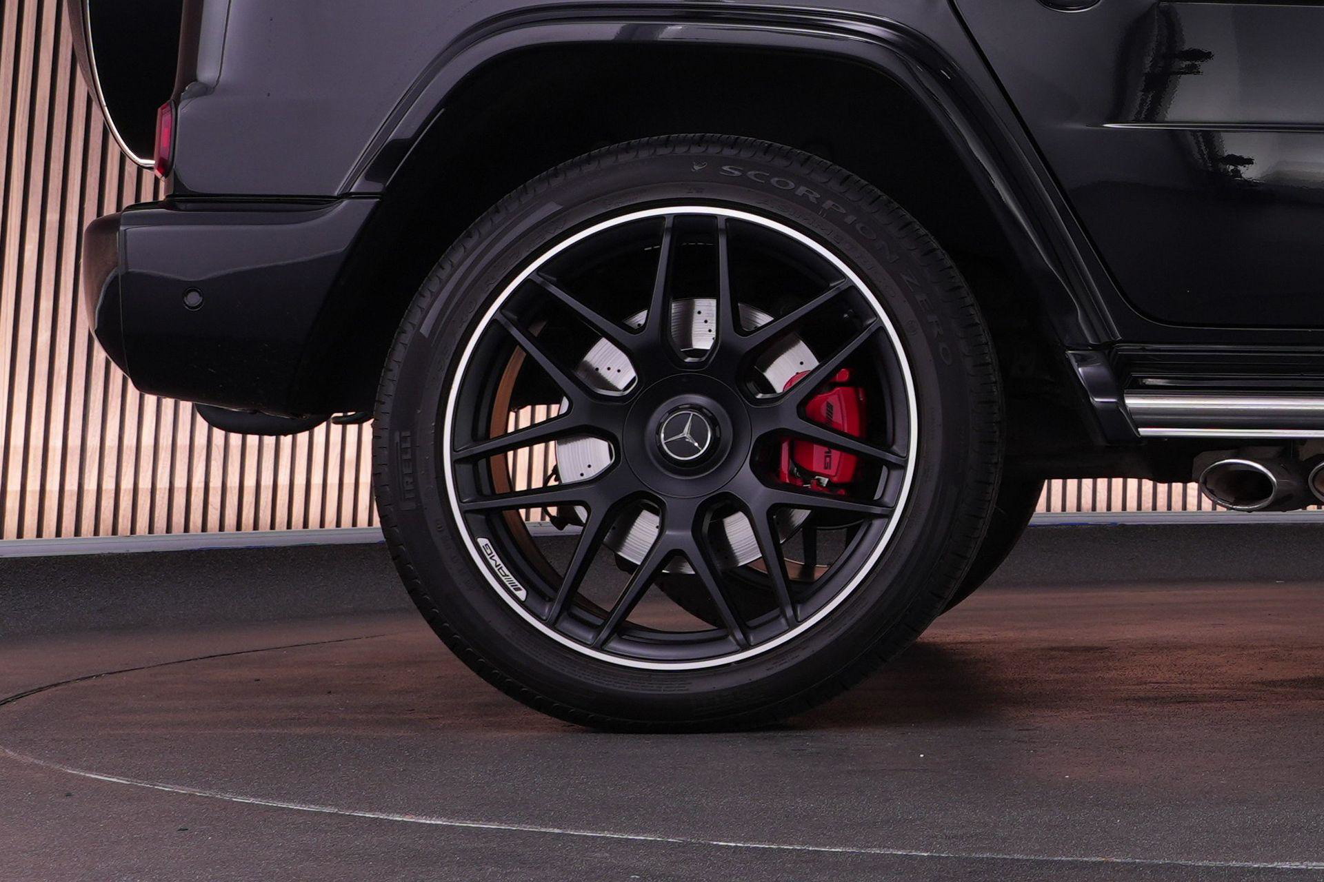 Deze G63 is ook gewoon goed uitgevoerd. Volledig nappaleder interieur, Burmester soundsysteem, panoramadak, ambient lighting en een digitaal display. Stoelcomfortpakket, verwarmd stuur, alles zit erop wat je dagelijks gebruikt.