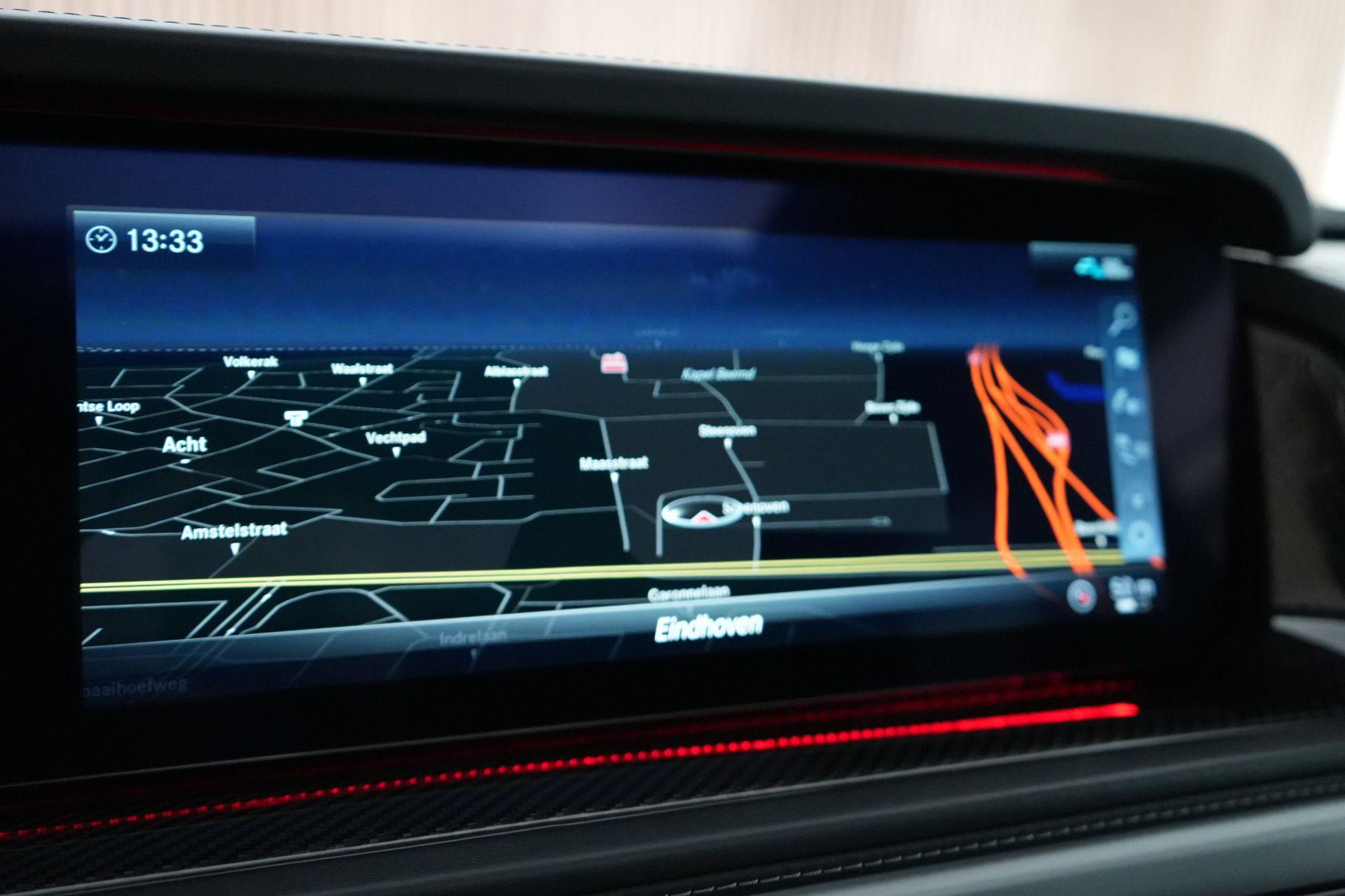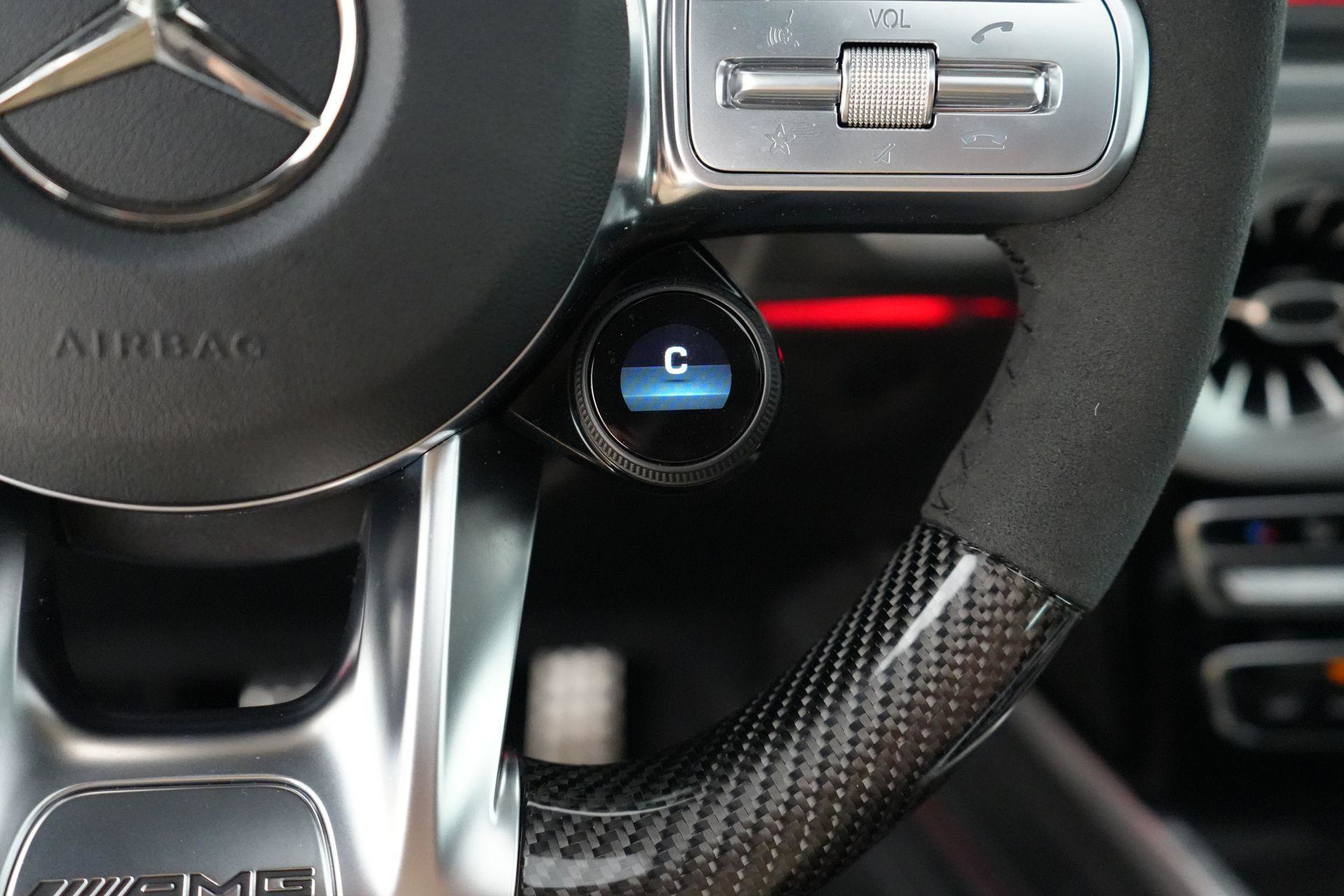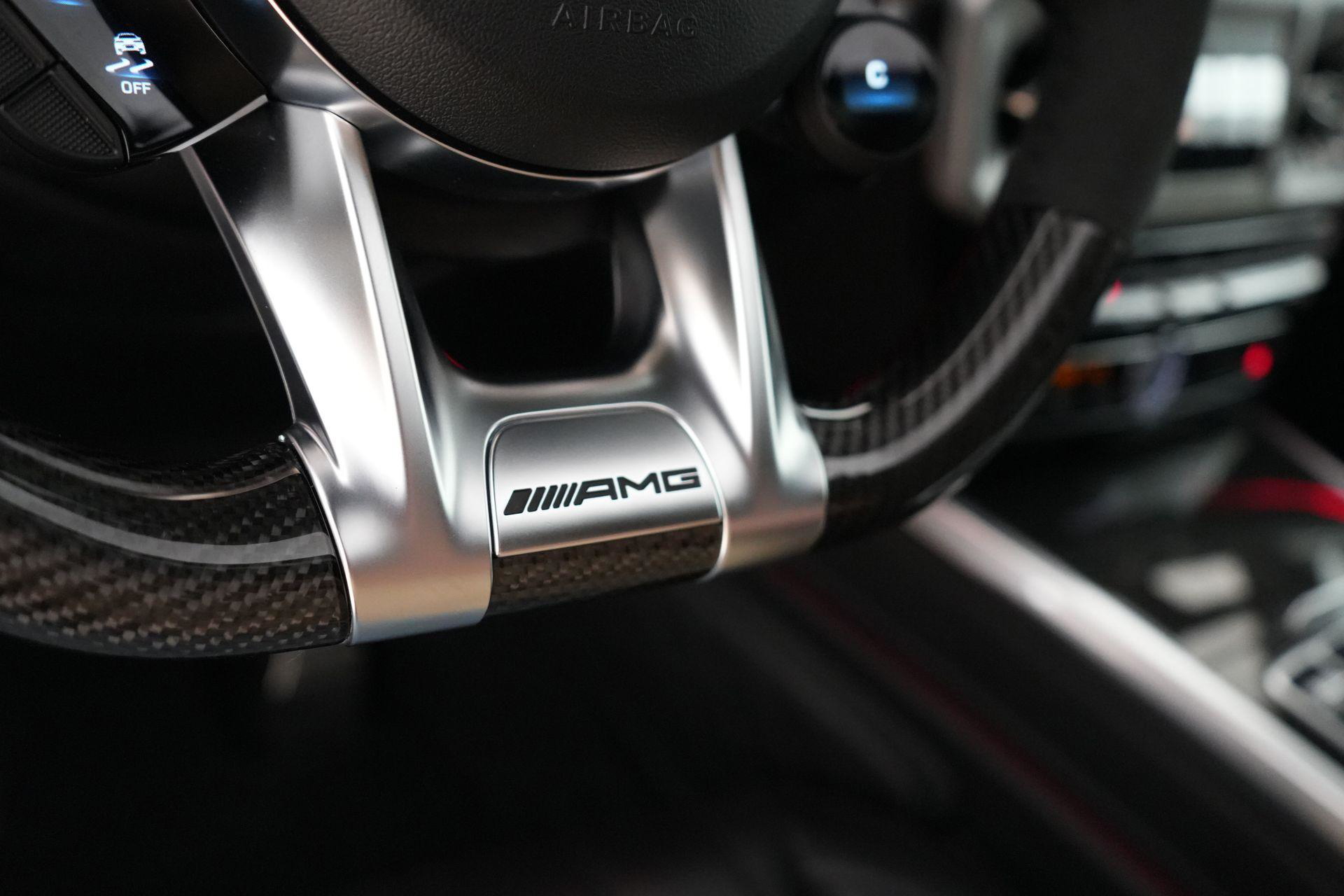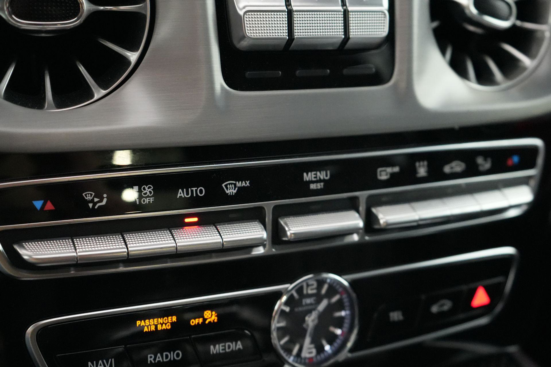 Deze G63 is ook gewoon goed uitgevoerd. Volledig nappaleder interieur, Burmester soundsysteem, panoramadak, ambient lighting en een digitaal display. Stoelcomfortpakket, verwarmd stuur, alles zit erop wat je dagelijks gebruikt.