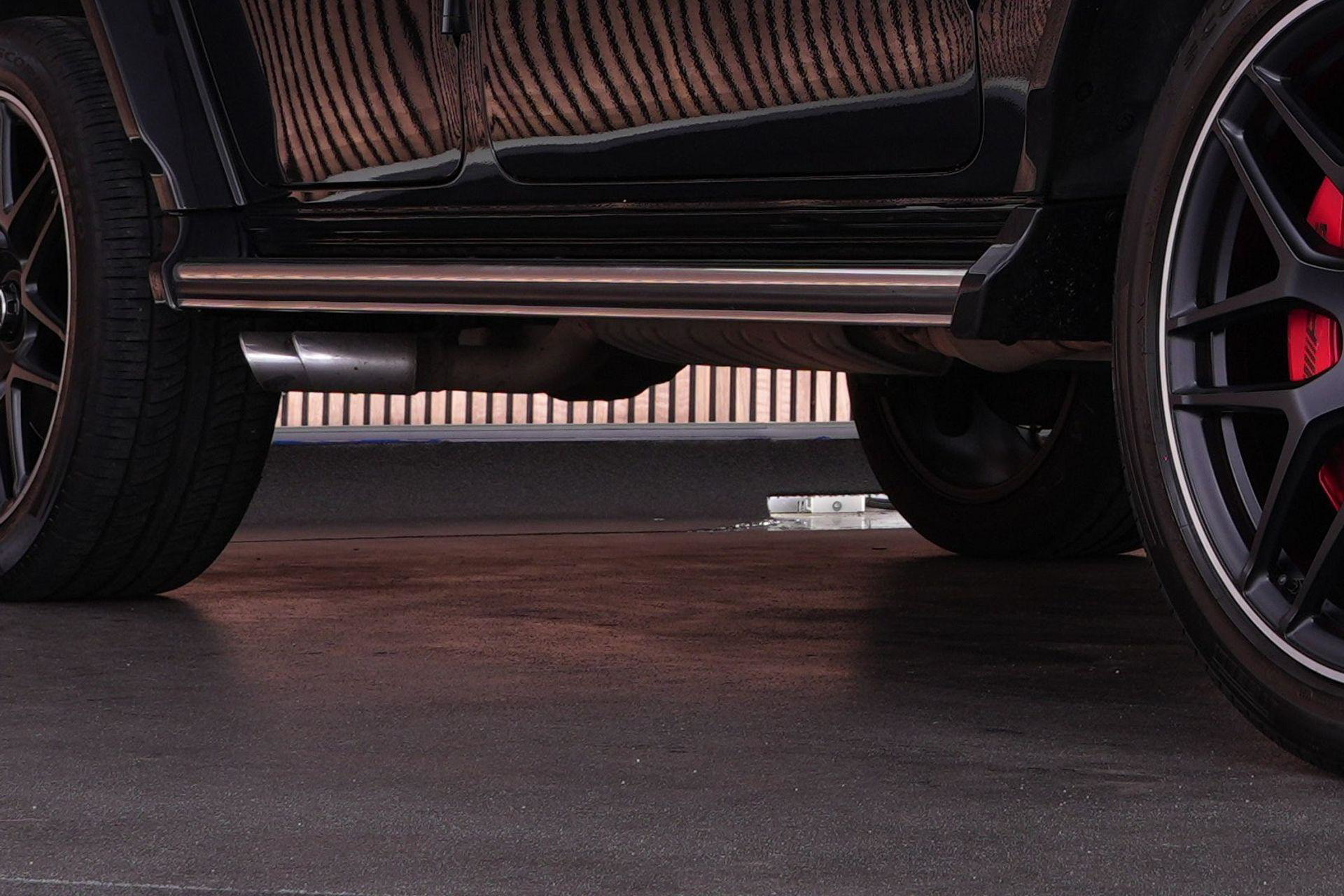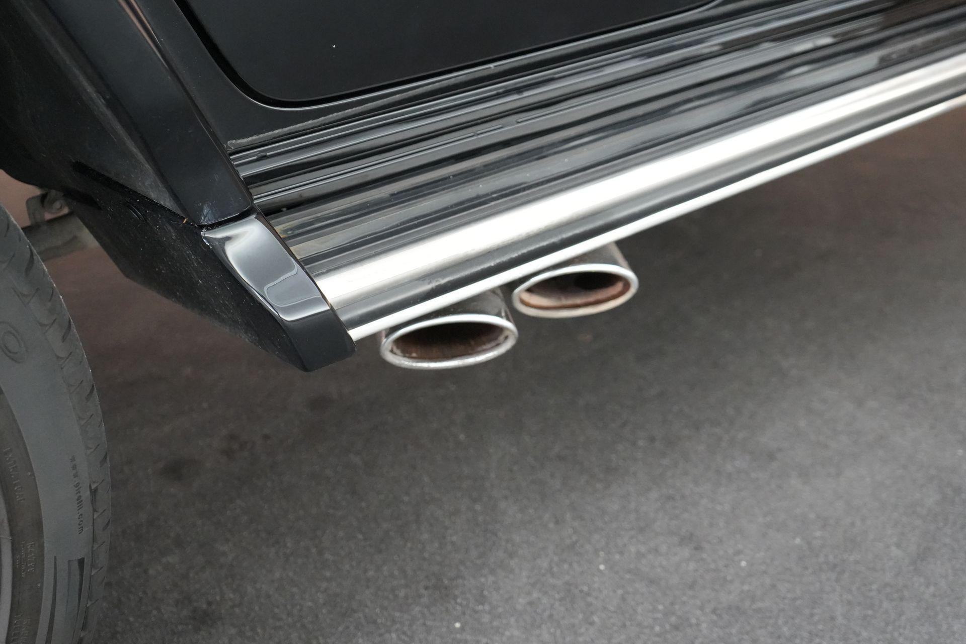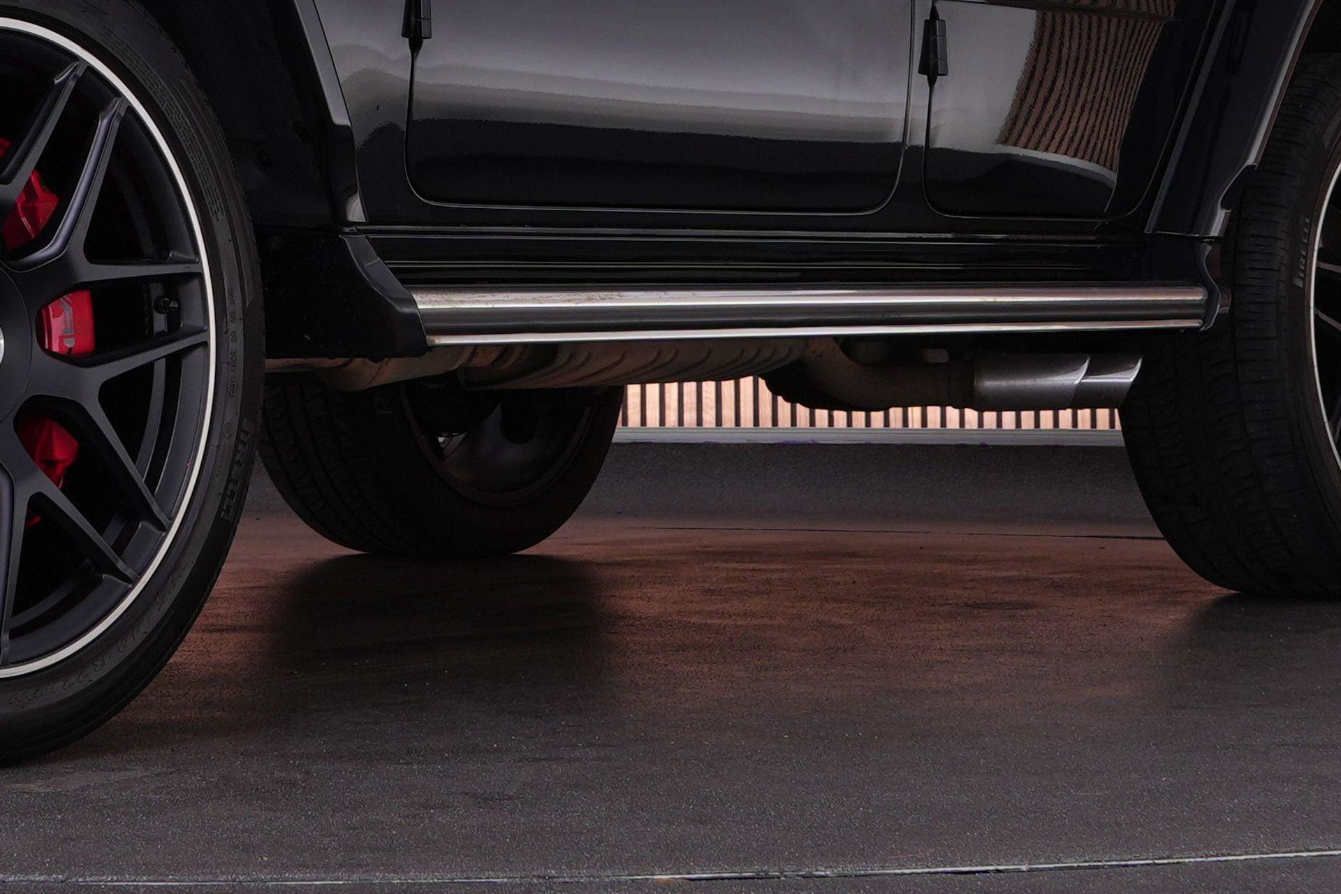 Dit is gewoon een G63 zoals je hem wilt zien. Zwart, Night pakket, 22 inch velgen en die brede wielkasten. Onder de kap ligt de bekende 4.0 V8 biturbo. Starten en je hoort direct wat het is. In combinatie met het schakelbare uitlaatsysteem klinkt hij precies goed: rustig als je wilt, maar met genoeg geluid zodra je gas geeft.