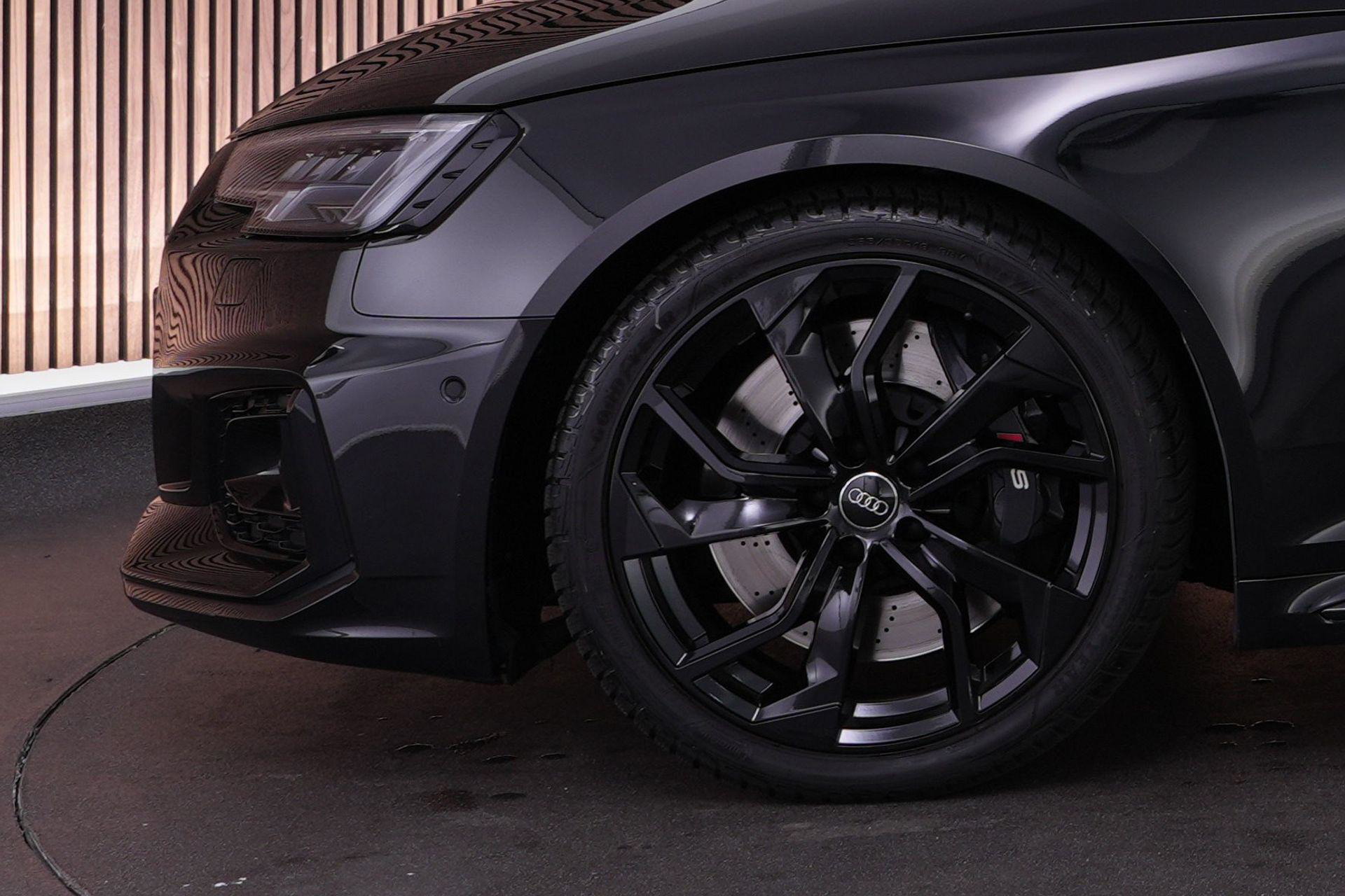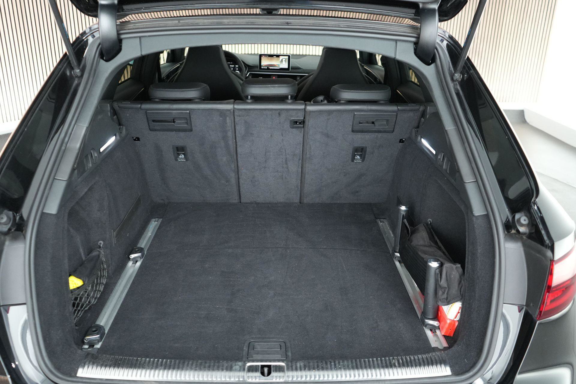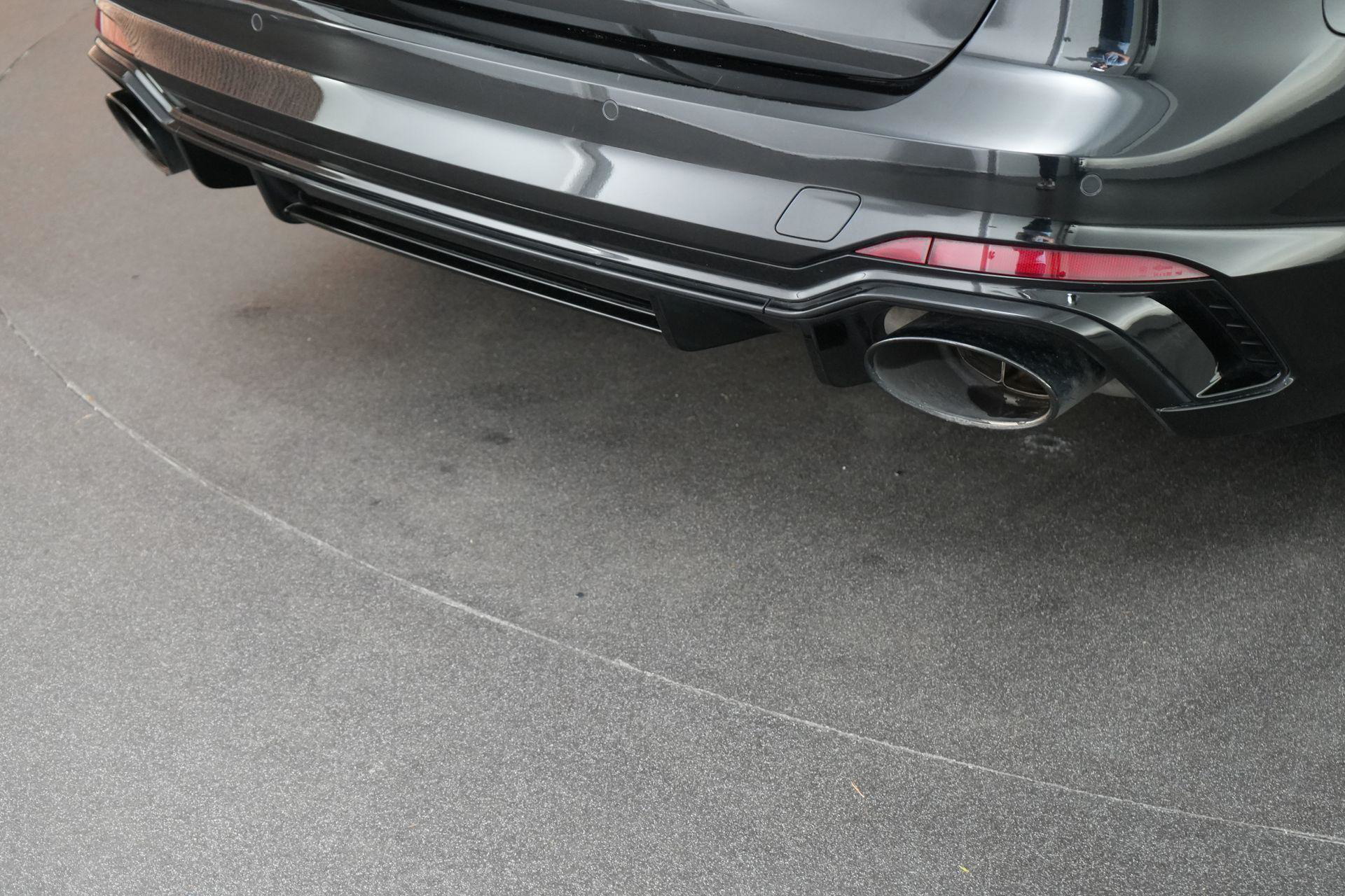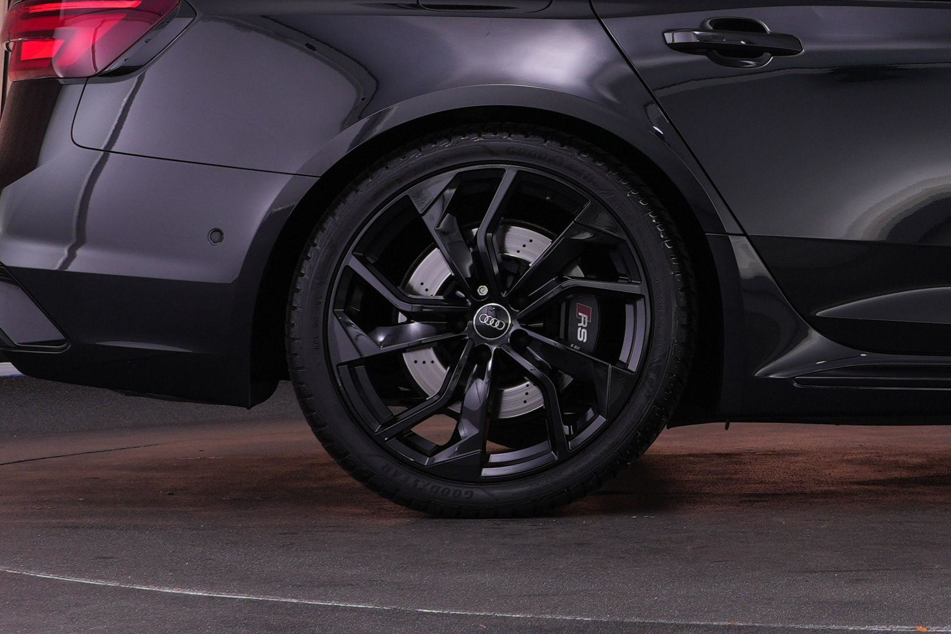 Audi RS4 Avant 2.9 TFSI quattro uit 2019 in Mythoszwart metallic. Een auto die alles in huis heeft: de ruimte en bruikbaarheid van een Avant, gecombineerd met het karakter en de prestaties die je van een echte RS verwacht. Dankzij de 2.9 biturbo V6, quattro-aandrijving en tiptronic automaat is dit een auto die onder alle omstandigheden indruk maakt, maar tegelijk ook comfortabel genoeg is voor dagelijks gebruik.