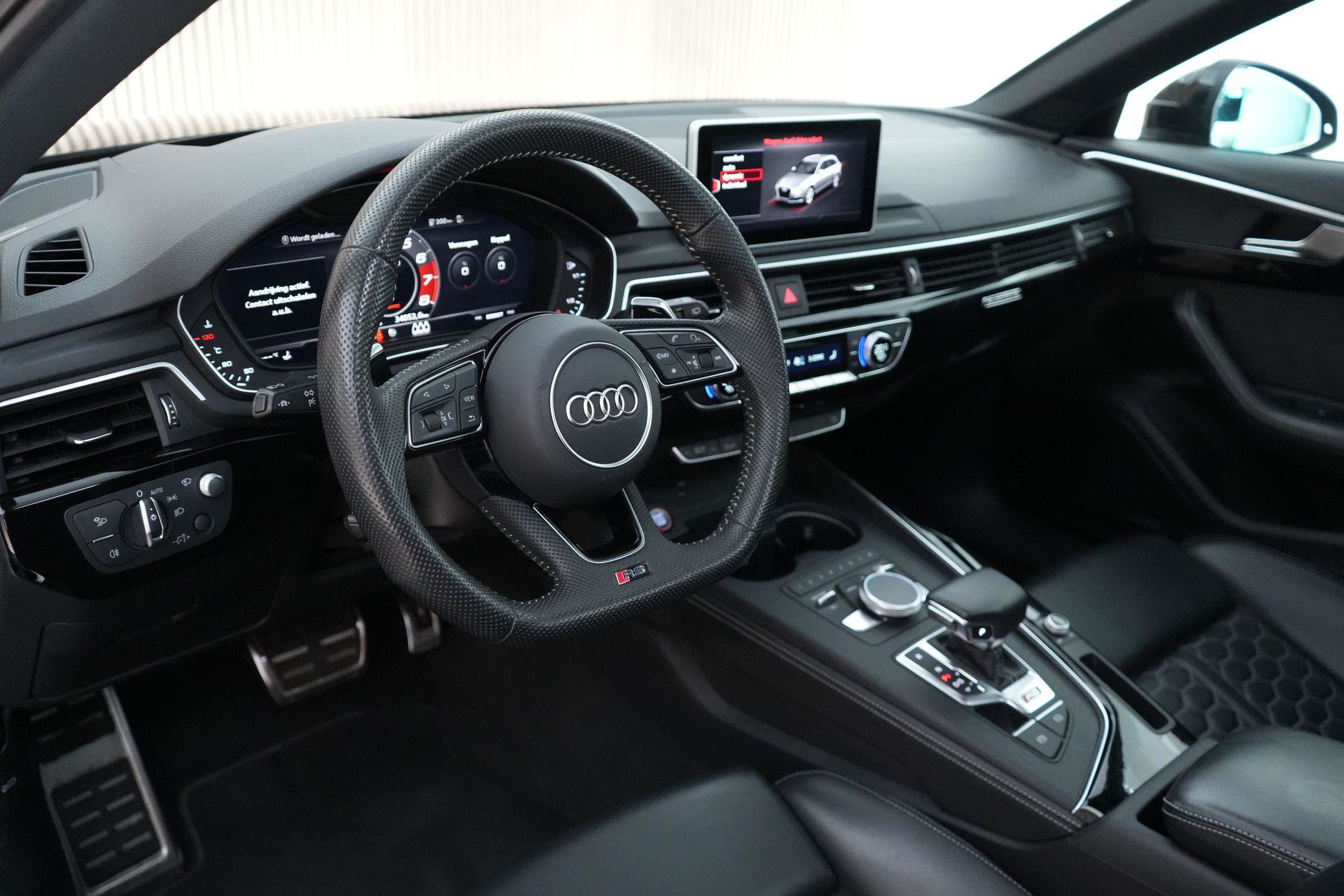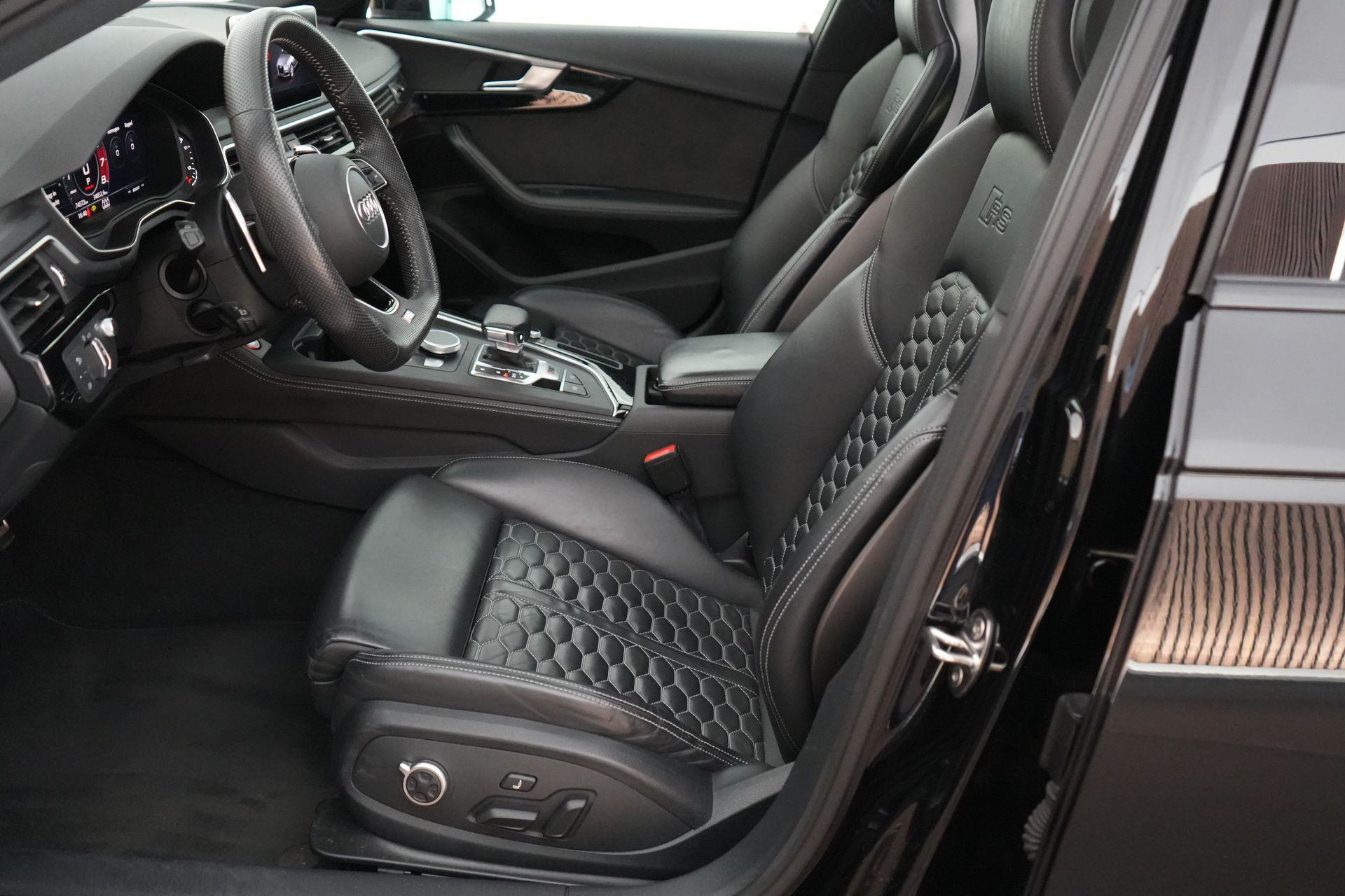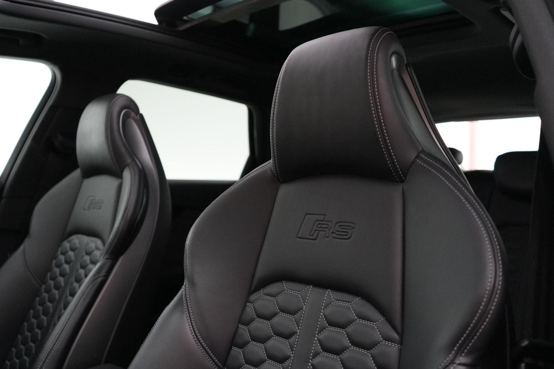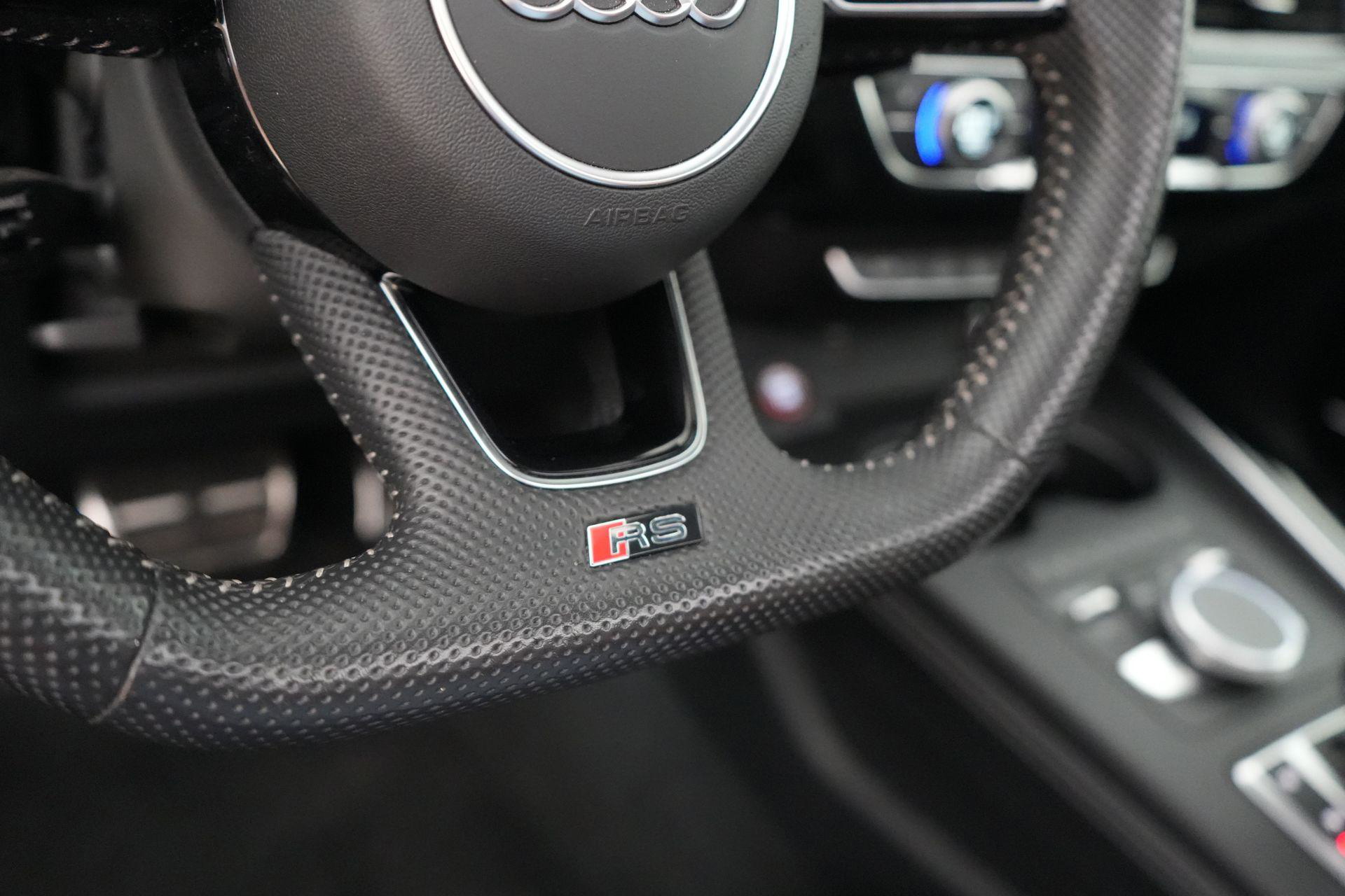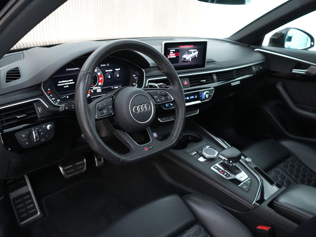 Dit exemplaar is smaakvol samengesteld en bijzonder compleet uitgevoerd. Denk aan het Sportonderstel Plus met Dynamic Ride Control, sportuitlaat, panoramadak, RS-sportstoelen, Fine Nappa lederen bekleding met honingraatstiksel, stoelverwarming voor en achter, massagefunctie voorin, Bang & Olufsen 3D sound, head-up display, 360-graden camera, Matrix LED-verlichting, adaptieve cruise control, lane assist, side assist en het volledig zwarte optiekpakket. De combinatie met de Audi Sport gesmede 20 inch velgen in antracietzwart maakt het geheel helemaal af.