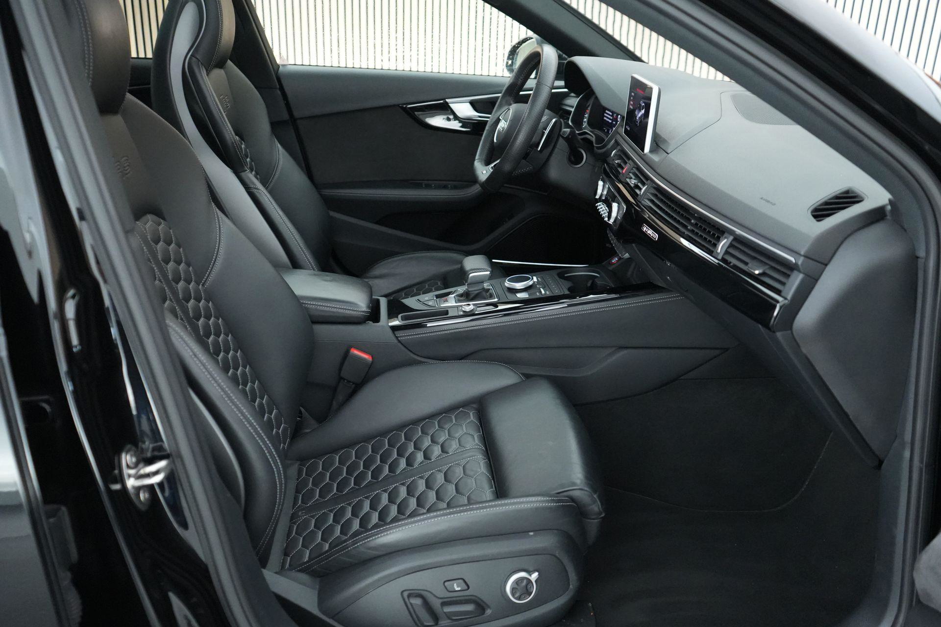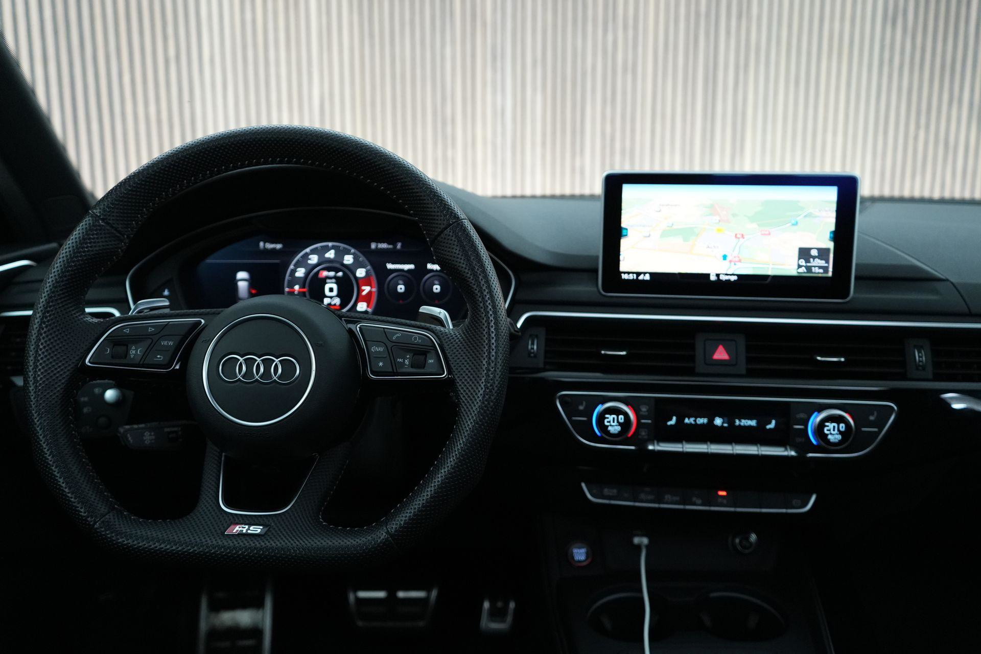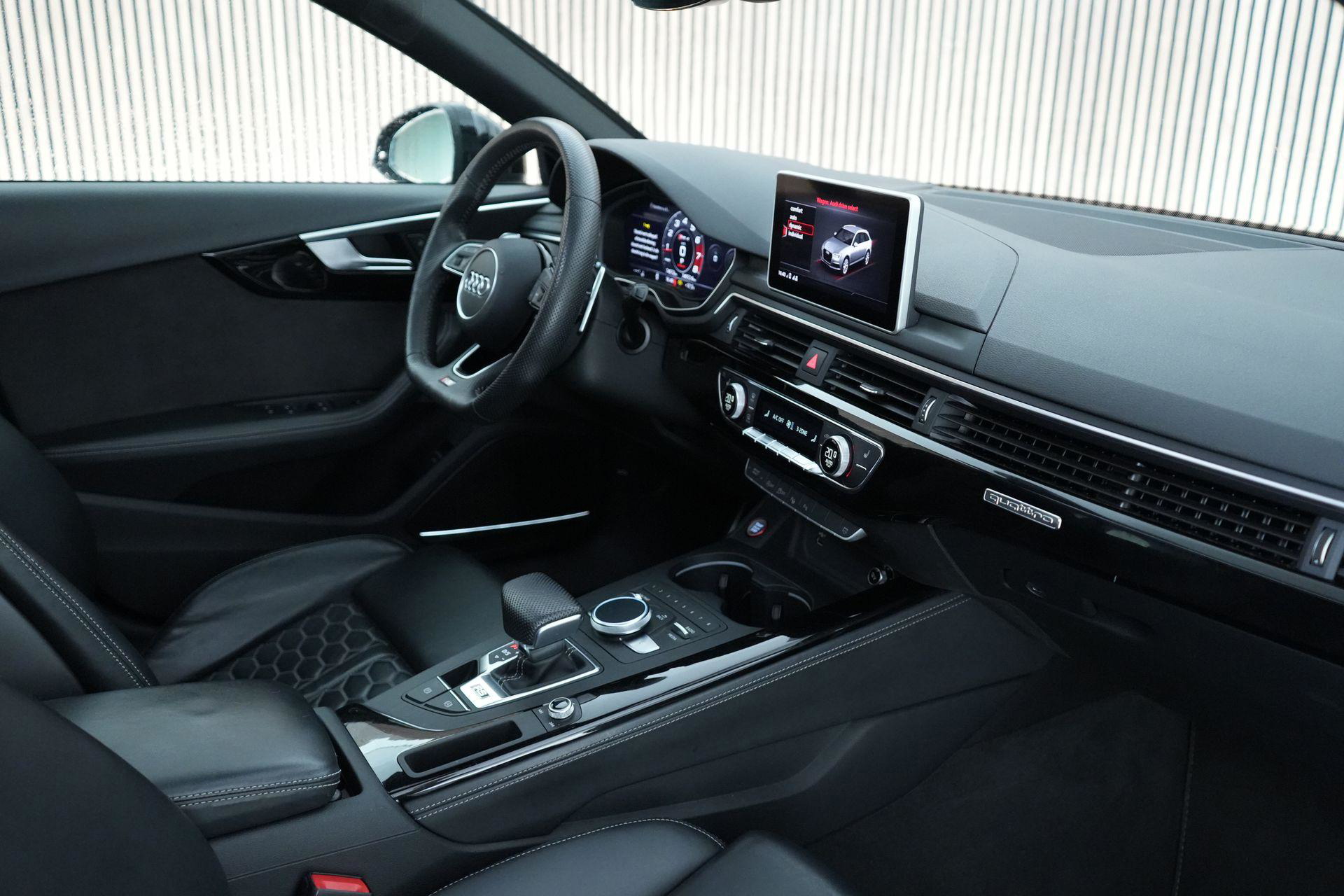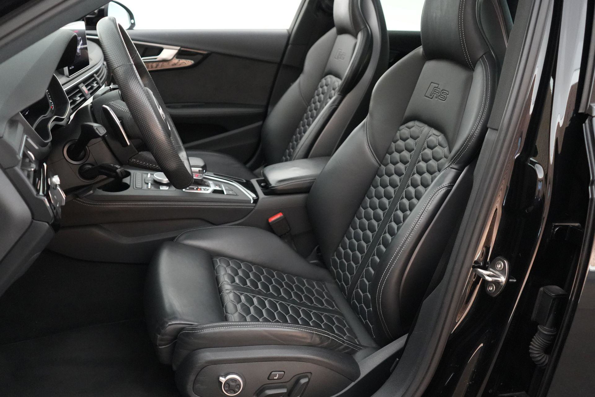 Dit exemplaar is smaakvol samengesteld en bijzonder compleet uitgevoerd. Denk aan het Sportonderstel Plus met Dynamic Ride Control, sportuitlaat, panoramadak, RS-sportstoelen, Fine Nappa lederen bekleding met honingraatstiksel, stoelverwarming voor en achter, massagefunctie voorin, Bang & Olufsen 3D sound, head-up display, 360-graden camera, Matrix LED-verlichting, adaptieve cruise control, lane assist, side assist en het volledig zwarte optiekpakket. De combinatie met de Audi Sport gesmede 20 inch velgen in antracietzwart maakt het geheel helemaal af.