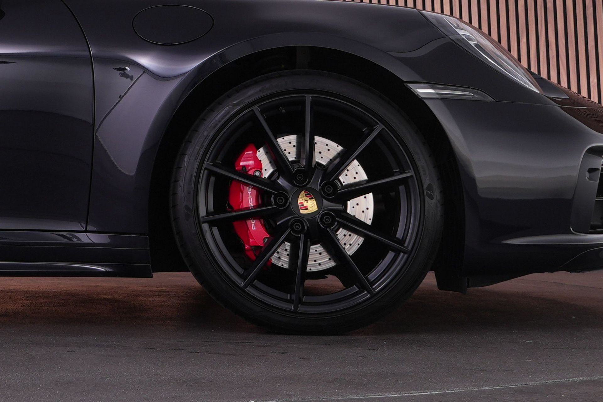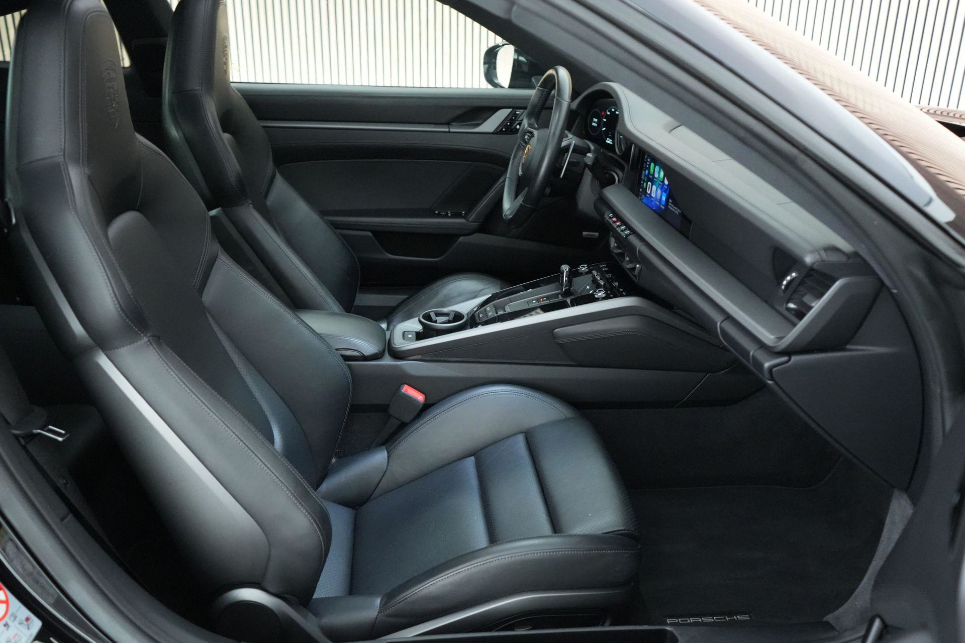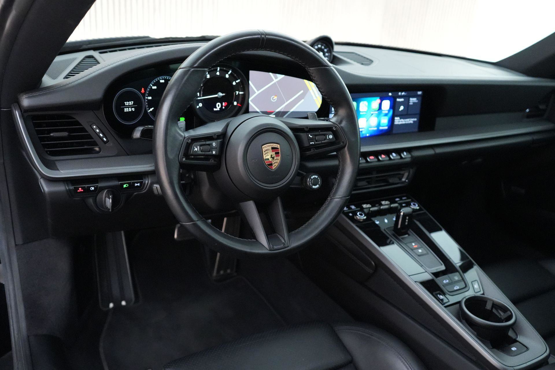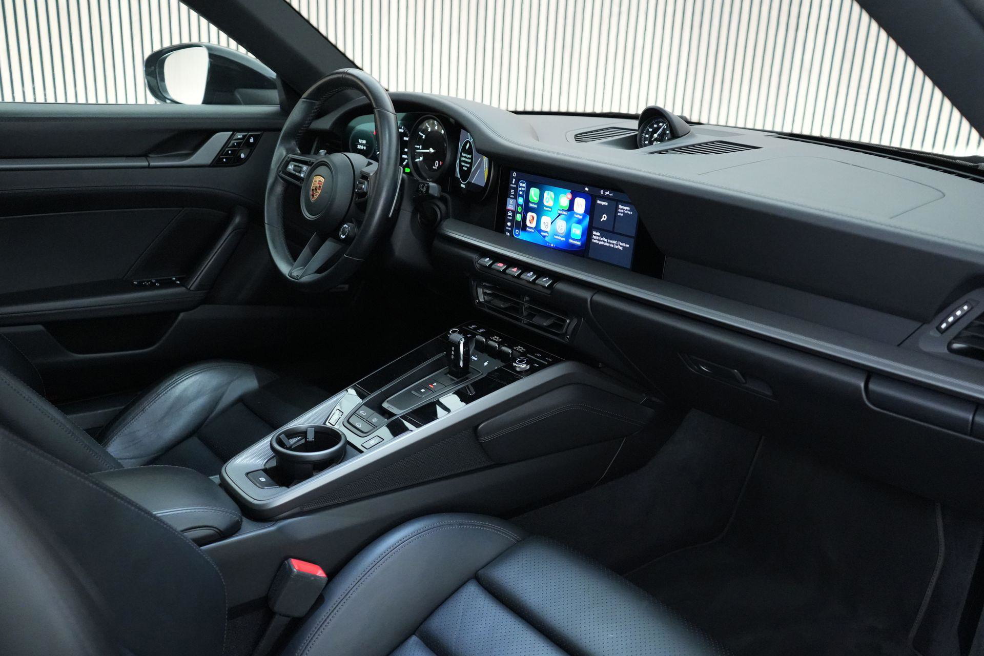 Deze Porsche 911 Carrera 4S uit 2020 is uitgevoerd in Diepzwart metallic met een zwart lederen interieur en heeft precies de uitstraling die je van een 992 mag verwachten: stijlvol, sportief en tot in detail goed samengesteld. Dankzij de vierwielaandrijving, het Sport Chrono Pakket en de achterasbesturing is dit niet alleen een prachtige verschijning, maar ook een auto die echt indruk maakt achter het stuur.