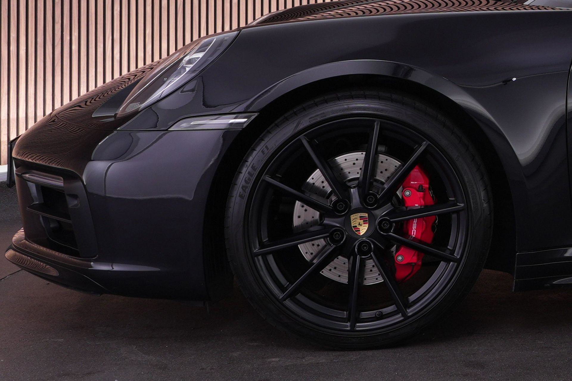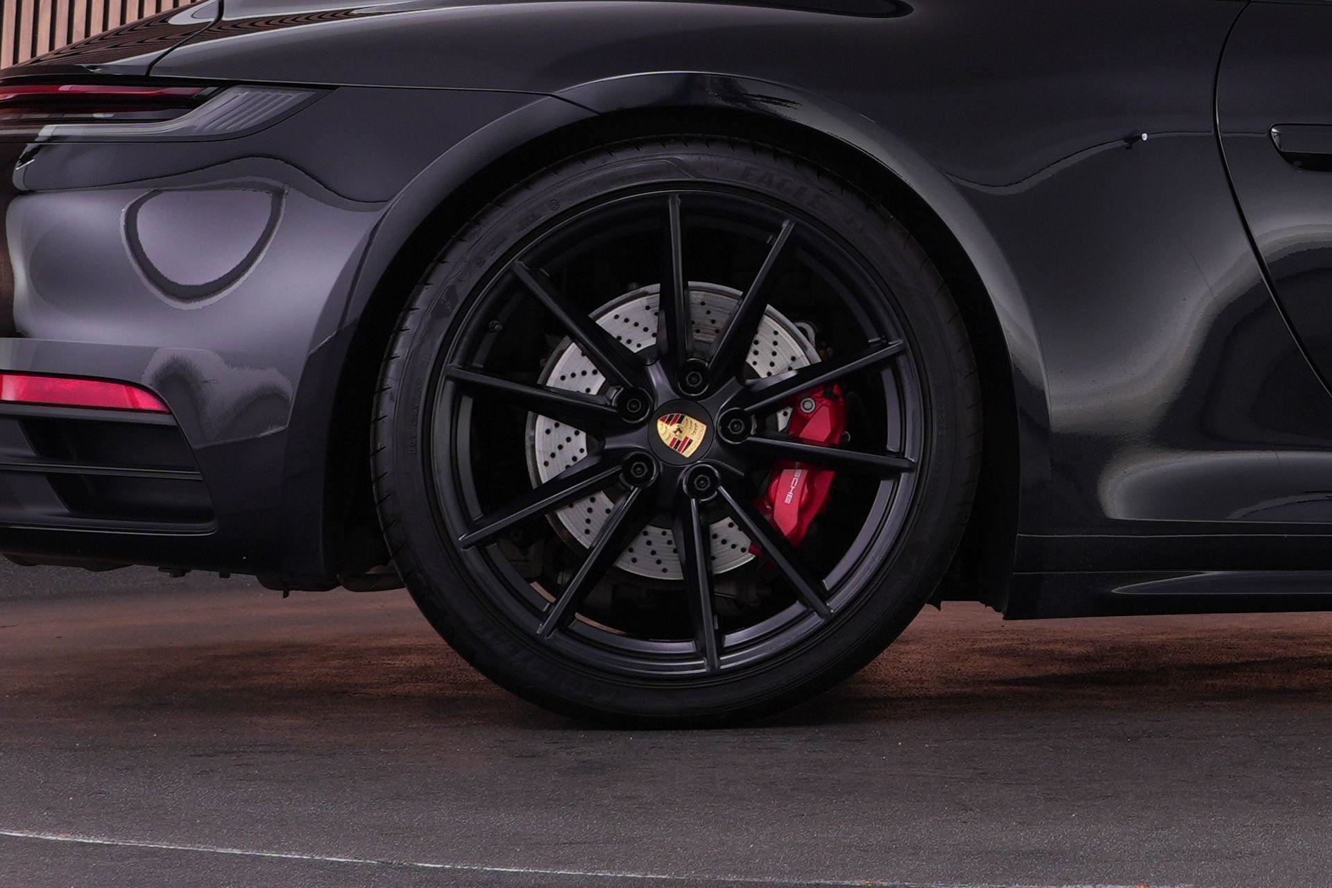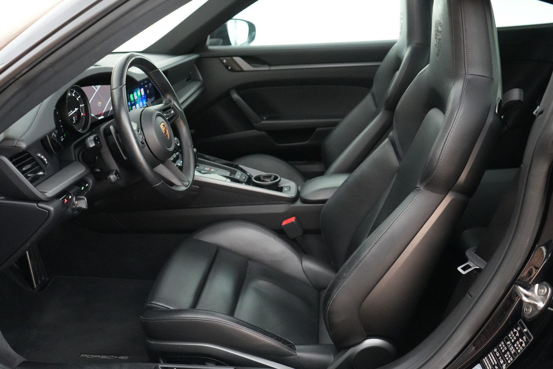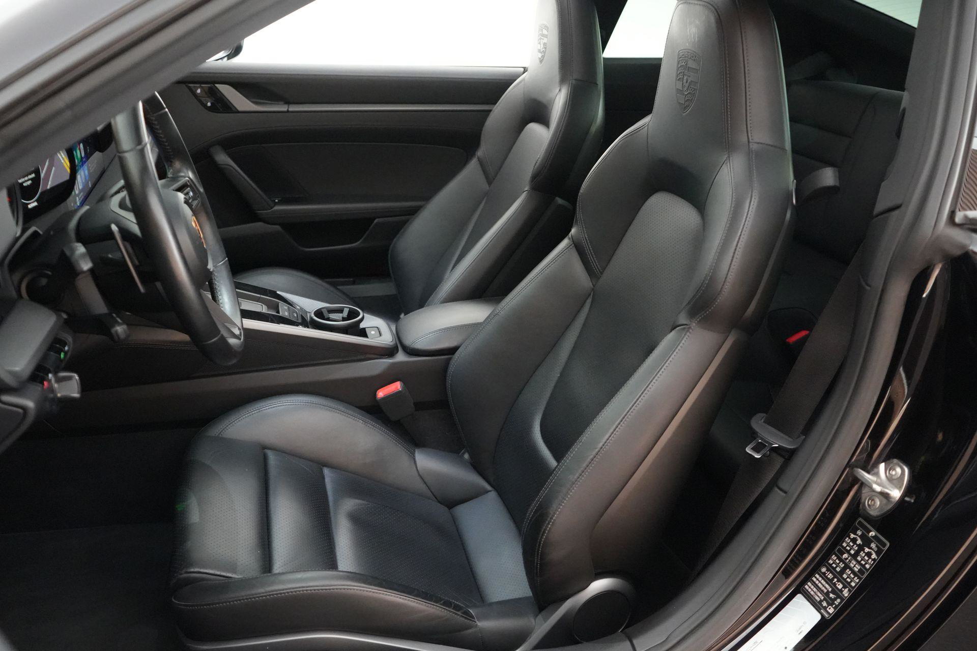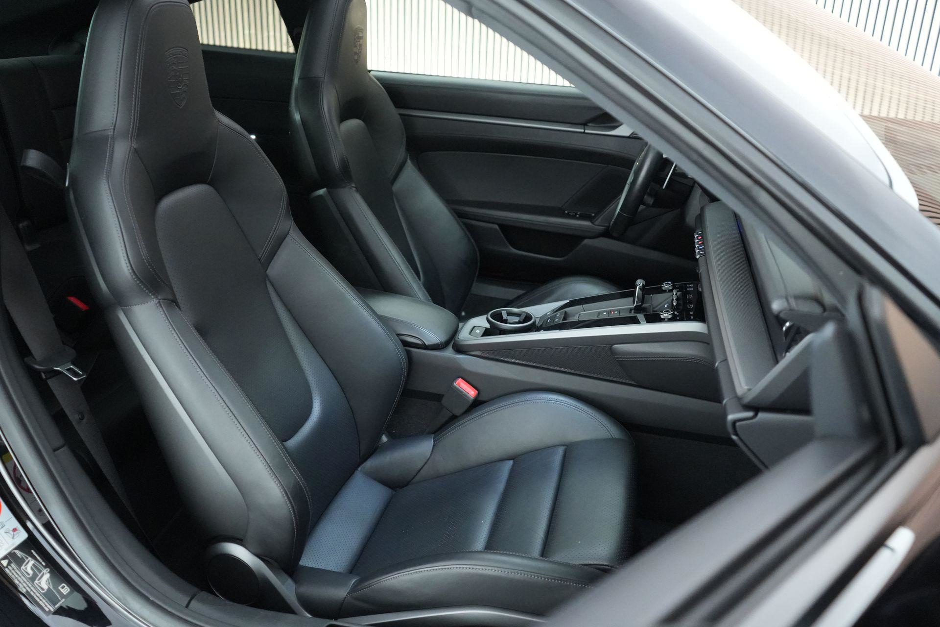 Deze Porsche 911 Carrera 4S uit 2020 is uitgevoerd in Diepzwart metallic met een zwart lederen interieur en heeft precies de uitstraling die je van een 992 mag verwachten: stijlvol, sportief en tot in detail goed samengesteld. Dankzij de vierwielaandrijving, het Sport Chrono Pakket en de achterasbesturing is dit niet alleen een prachtige verschijning, maar ook een auto die echt indruk maakt achter het stuur.